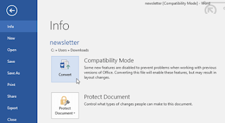 من وضع التوافق، ستحتاج إلى تحويل المستند إلى نوع الإصدار الحالي. ومع